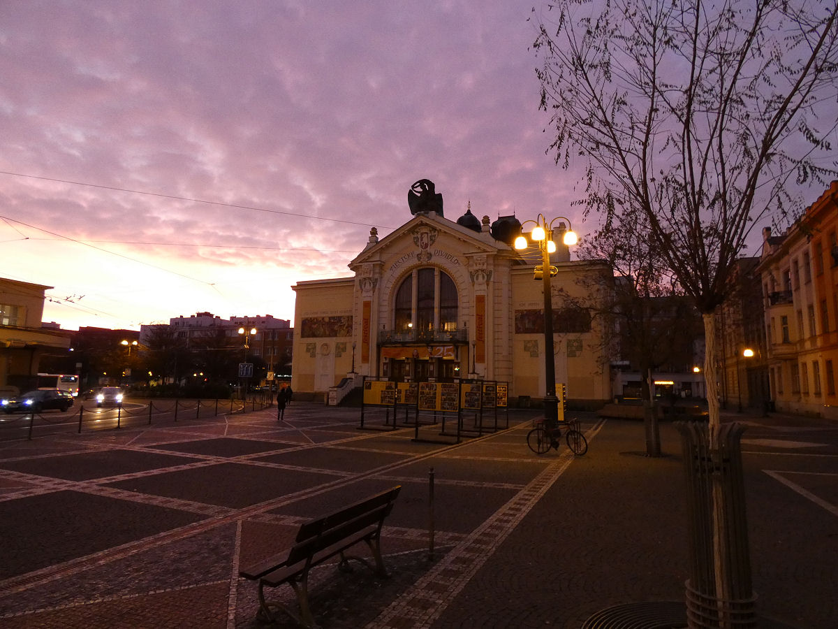 Časná ranní procházka po Pardubicích. V lednu svítá až po 7 hodině, v této době lze spatřit probouzející se město.