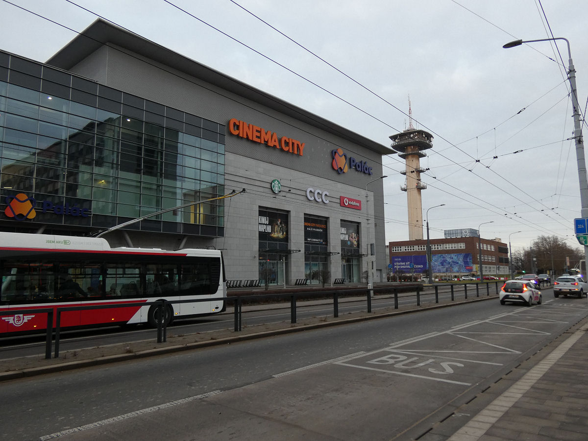 Nejznámější dominantou města je Zelená brána, tyčící se do výšky 60 metrů, Pardubice (01/2025).
