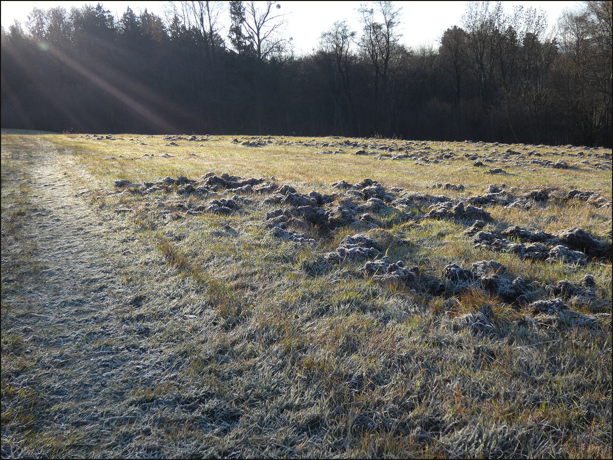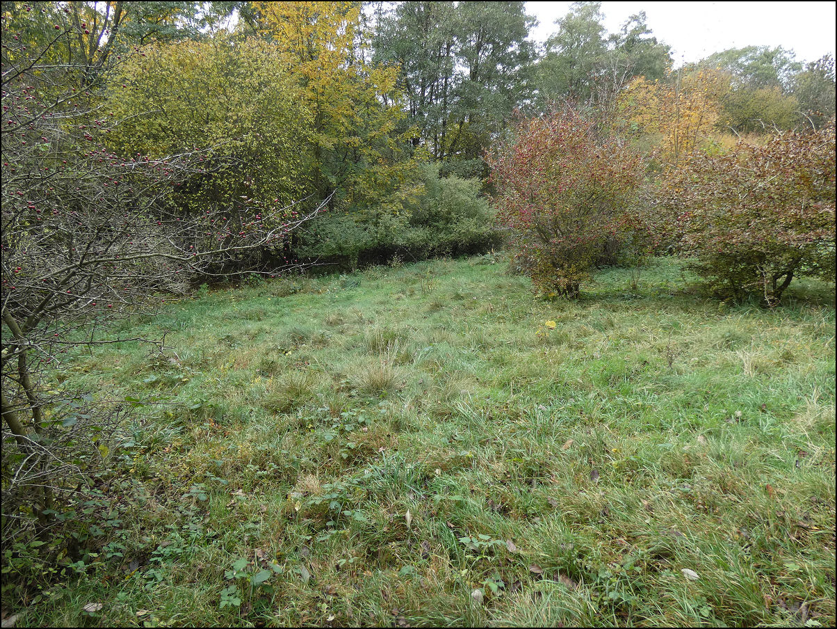SPL v druhé etapě péče, která započala od roku 2024, nyní tedy podzim druhého roku. Prameniště, které leží mimo samotnou plochu SPL, je udržované, v přímém okolí, s loňskou výsadbou pro zpevnění břehu, ostřicí lesní (Carex sylvatica). Stav vody průměrný, stále ještě i v této době bez přetoku do spodního záchytného stupně. Na podzim je silně ovlivněno spadem listí z okolního listnatého lesa (olše, břízy). Louky na SPL většinově prošly minimálně 2 sečemi, plochy pro podporu nižší vegetace byly posečené i 5x. Obnova travních i bylinných druhů monitorována. Polokřovitá vegetace ostružiníku (Rubus) usměrňována na požadované ploše, netýkavka žláznatá (Impatiens glandulifera) částečně odstraňována, opět její význam monitorován. Střemchové křoviny sousedící s luční plochou prosvětlovány pro podporu hajní vegetace. Vedle deponie silikátových hornin (2024) byla významněji rozšířena deponie vápnitých hornin (vápenec, flyš) na více mikrolokalit v rámci vymezeného prostoru. V této době zde již kvete jen nemnoho pozdních druhů bylin (konopice, škarda), mnoho bylin ukončuje fázi sterilního rozvoje a vyklíčení mladých semenáčků, některým druhům dozrávají semena (rozchodníkovec), keřům plody (hloh, růže, trnka).