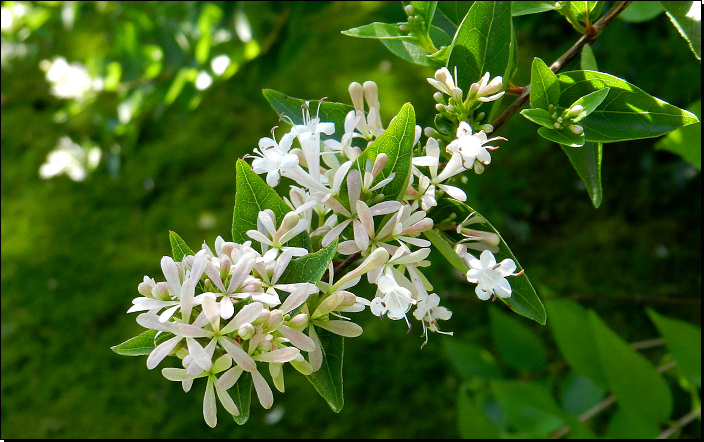 Rozšíření druhu je omezeno pouze na území střední a jižní Číny (Fujian, Guangdong, Guangxi, Guizhou, Henan, Hubei, Hunan, Jiangsu, Jiangxi, Sichuan, Taiwan, Yunnan, Zhejiang), přesná lokalizace původu je však mnohde již nemožná, neboť jde o i v Číně hojně pěstovaný druh. Obdobím květu v domovině je VIII.-IX., obdobím tvorby plodů pak X.-XI.. Ve střední Evropě se pouze pěstuje jako okrasný keř s mrazovým minimem do -18 °C (USDA 7).